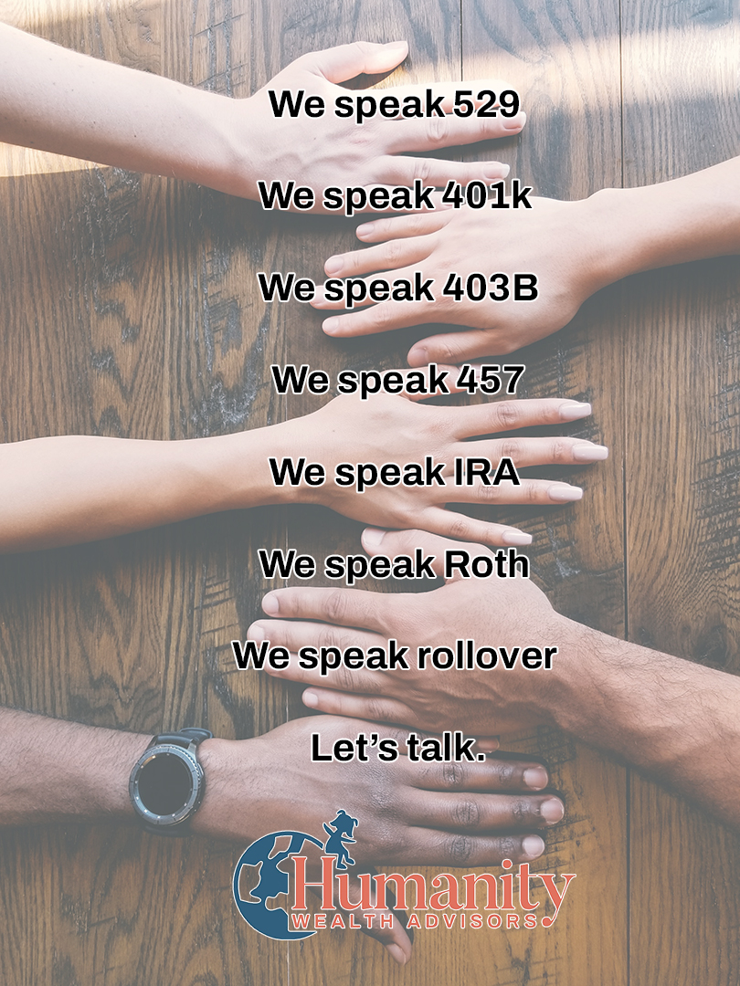At Humanity Wealth Advisors, we know that access to the right information/education can help change the trajectory of your financial future. We help you make more informed, personalized financial decisions as we have many resources you may need under one roof.